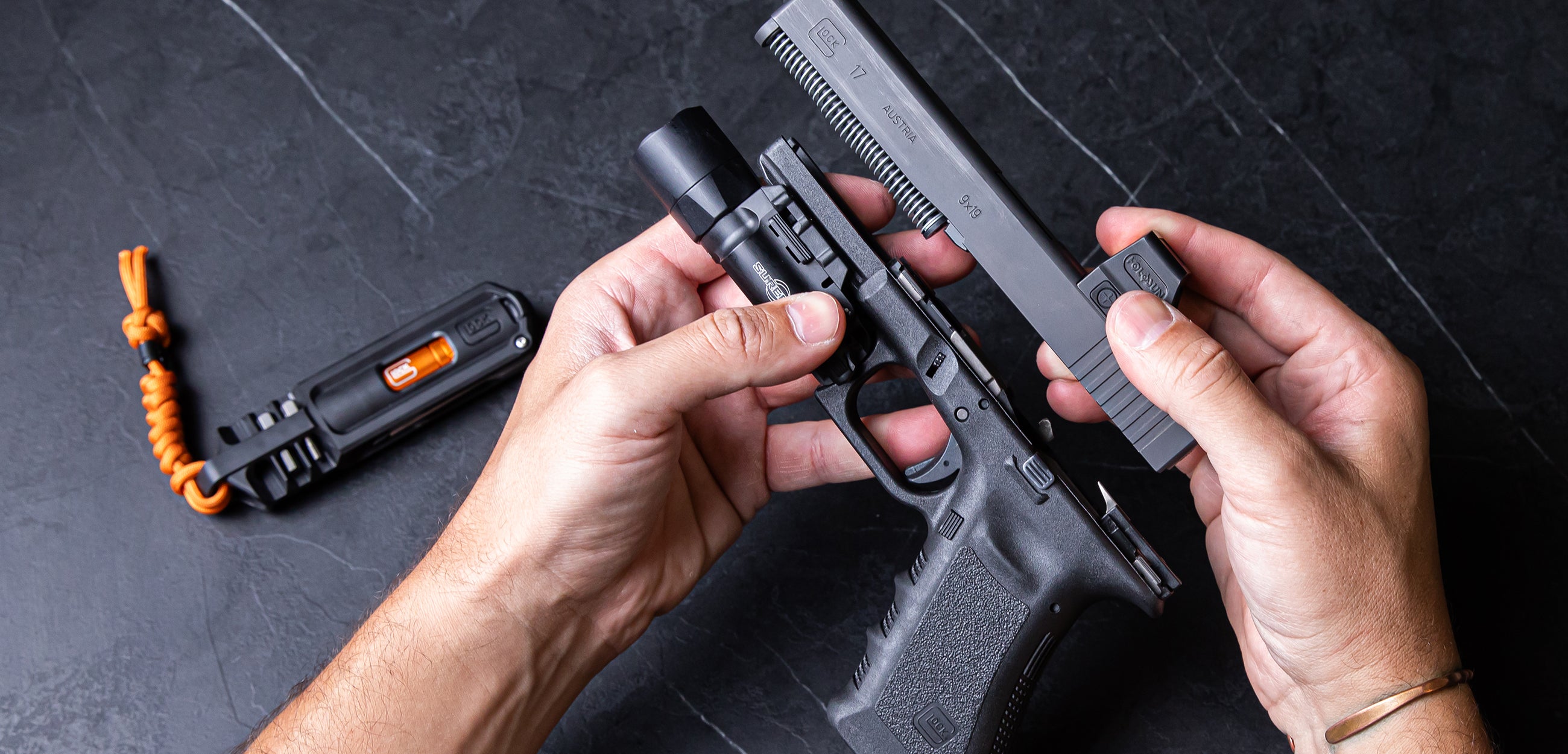 An official collaboration between Tactica, Safariland®, and Glock®, the Pistol Multitool is a ground-up design for the modern firearm enthusiast.