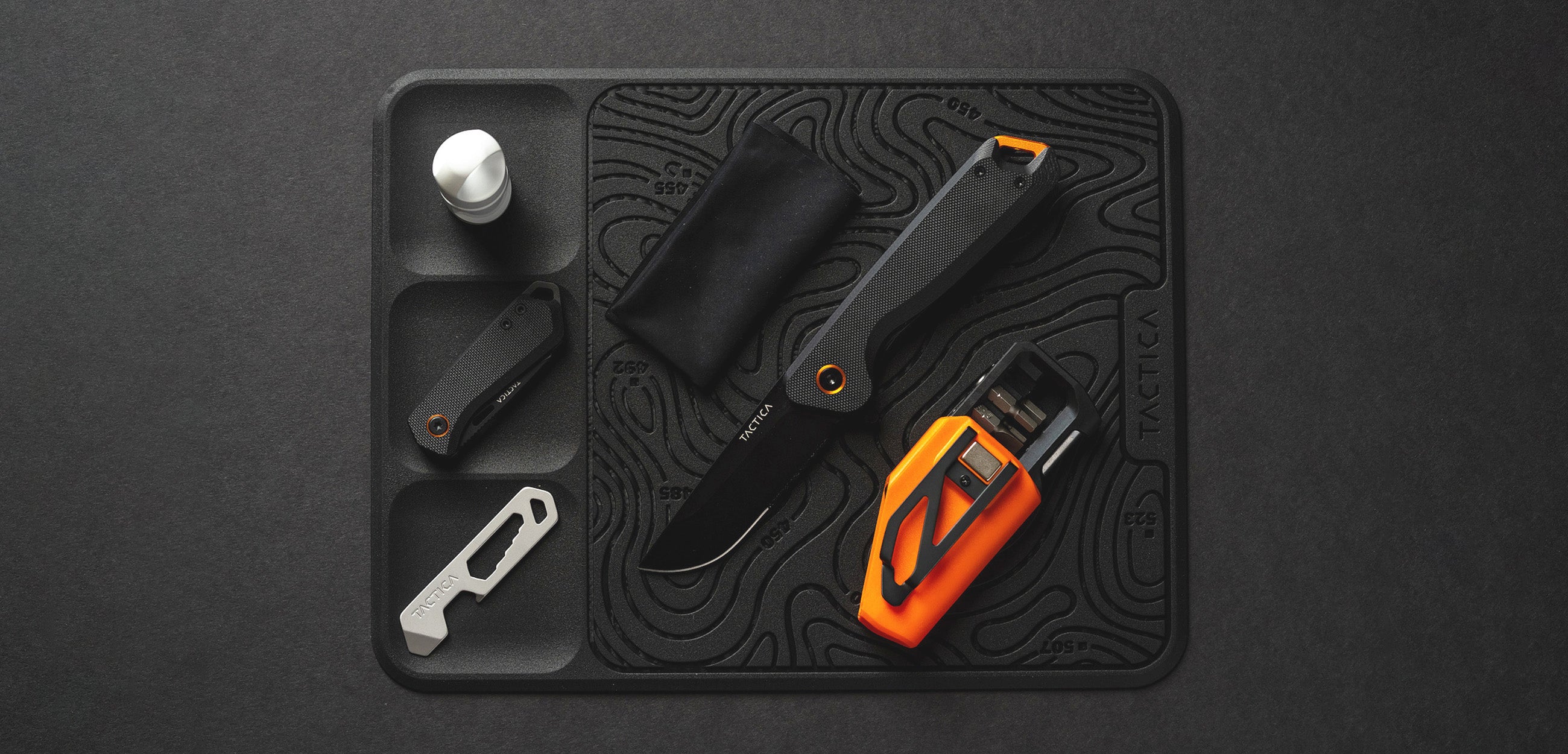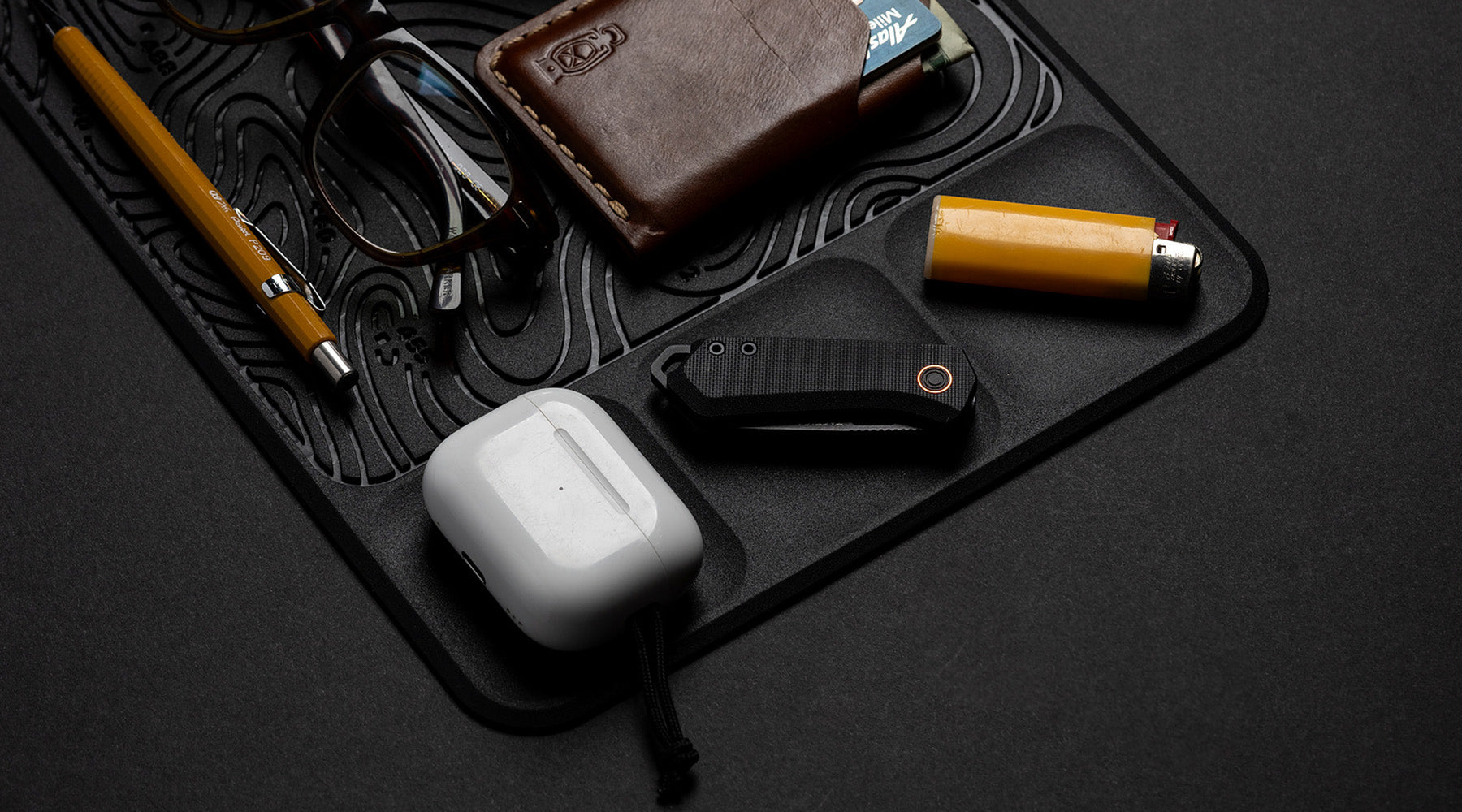 You treat your Everyday Carry right - don’t just dump it in a drawer at the end of the day. Give it the pride of place it deserves with a dedicated EDC mat, featuring debossed topography, dedicated catch areas for keys and earphones, and a flexible silicon construction that won’t slip or drop your gear.